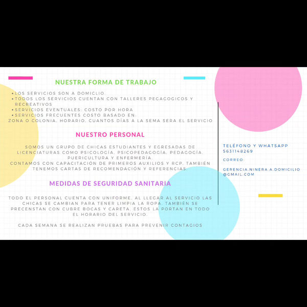 Somos un grupo de chicas ofreciendo servicios de cuidados a menores, para satisfacer las necesidades de los padres, aumentando la calidad de servicios de resguardo e integridad.